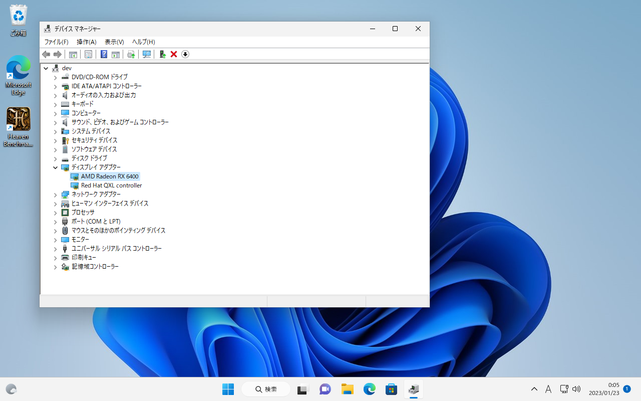 QEMU/KVMのWindows11仮想マシンにRadeon RX6400をパススルーし、仮想マシン上でGPUを使う方法をまとめる。